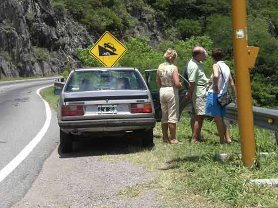 Giuseppe Ropolo, Maria Parizia y Mihaela Ocnasu en un alto en el camino al Dique San Roque en las Sierras de Córdoba (25/Ene/2007)