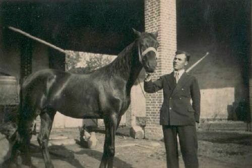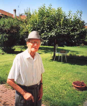 Giovanni en frente del salón de estar, dónde se recibian las visitas en los días de fiesta, año 1936